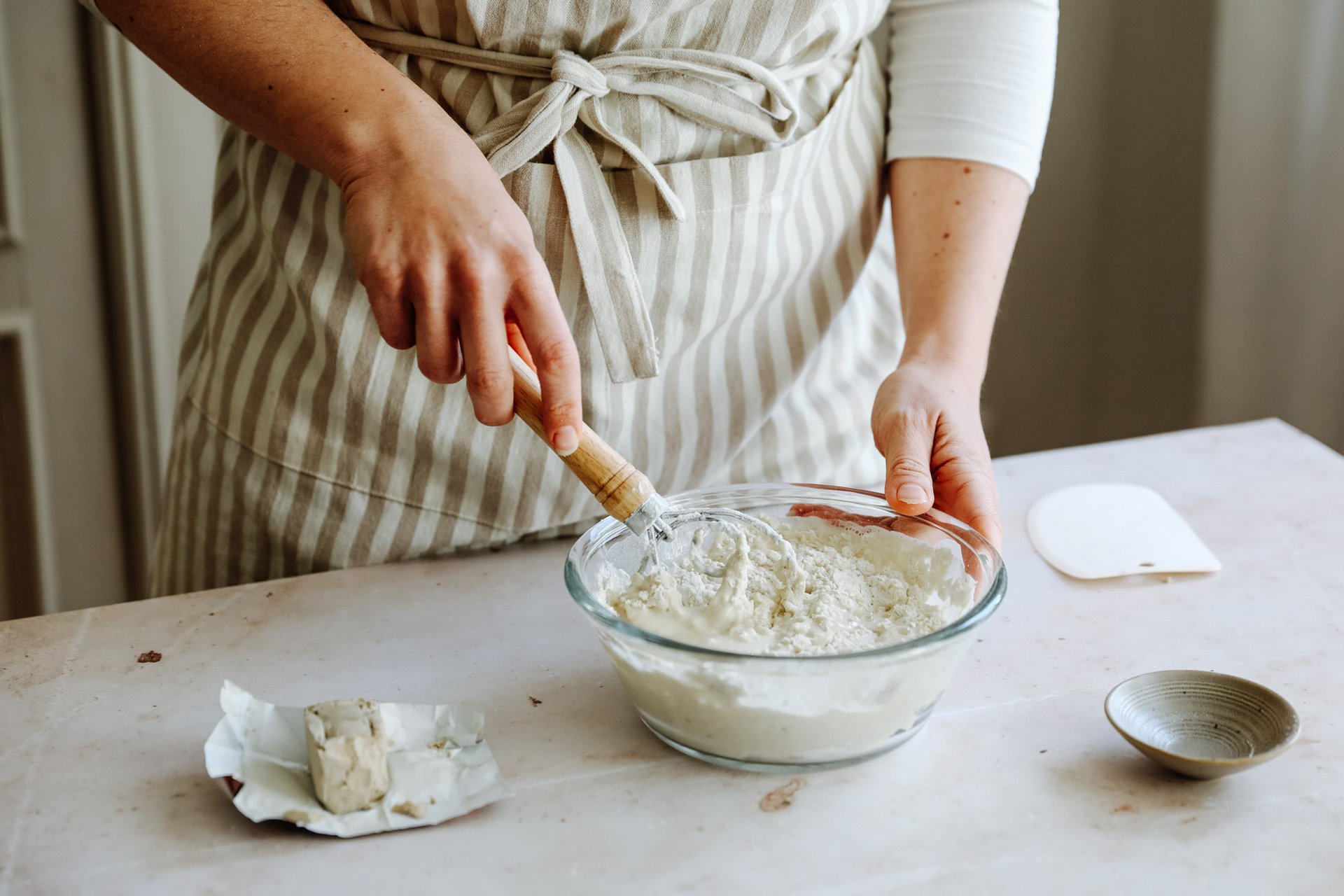 Rund um die Uhr wird in Fredy’s Backstube heller und dunkler Vorteig angesetzt. Vor der Weiterverarbeitung ruht der Teig rund 24 Stunden. Diese traditionelle Teigvorbereitung ermöglicht uns, konsequent auf den Zusatz künstlicher Backhilfsmittel zu verzichten. Das macht unsere Backwaren bekömmlich, aromatisch und sie bleiben länger frisch – bis zum letzten «Brösmeli».