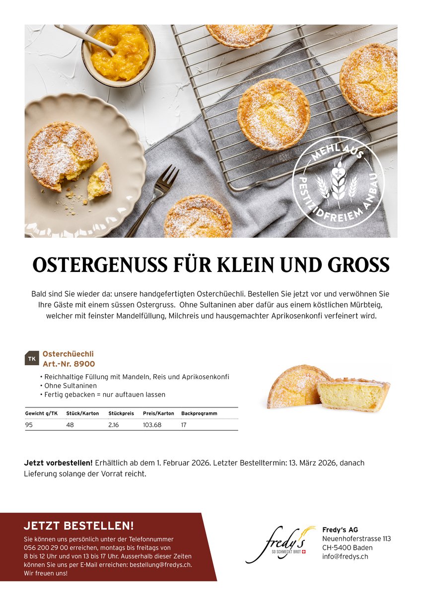 Ab dem 1. Februar sind unsere handgefertigten Osterchüechli wieder für Sie verfügbar!